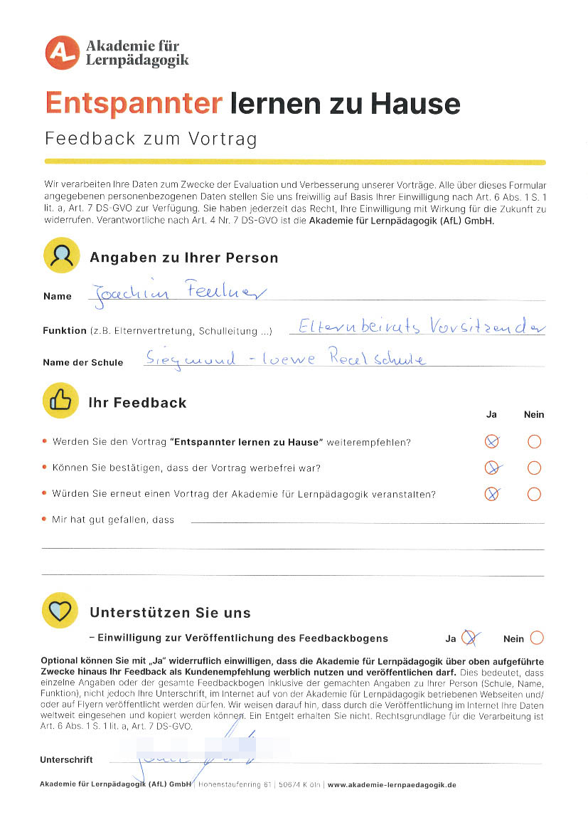 Der 75-minütige Vortrag enthält wertvolle Tipps und Methoden, die Eltern von Kindern aller Schulformen und Klassenstufen im Schulalltag unterstützen.