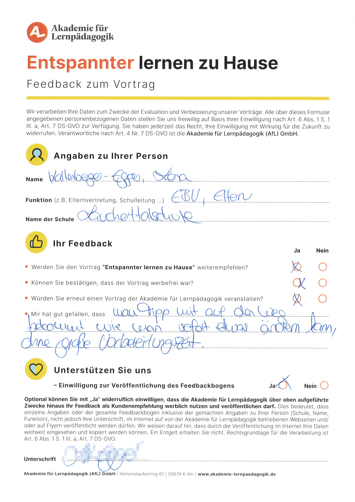 Wir haben ganz viele tolle Aspekte kennengelernt, wie wir unseren Kindern das Lernen leichter machen können.