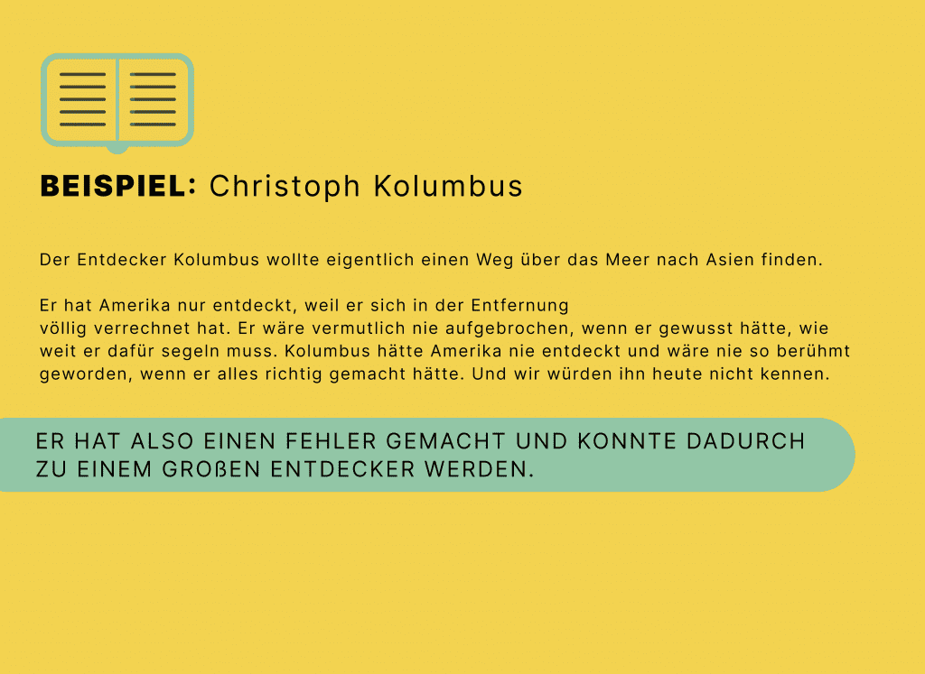 Zu einer positiven Fehlerkultur trägt auch bei, sich mit Fehlern oder vermeintlichen Misserfolgen zu beschäftigen, die sich in der Geschichte der Menschheit als großartig erwiesen haben.