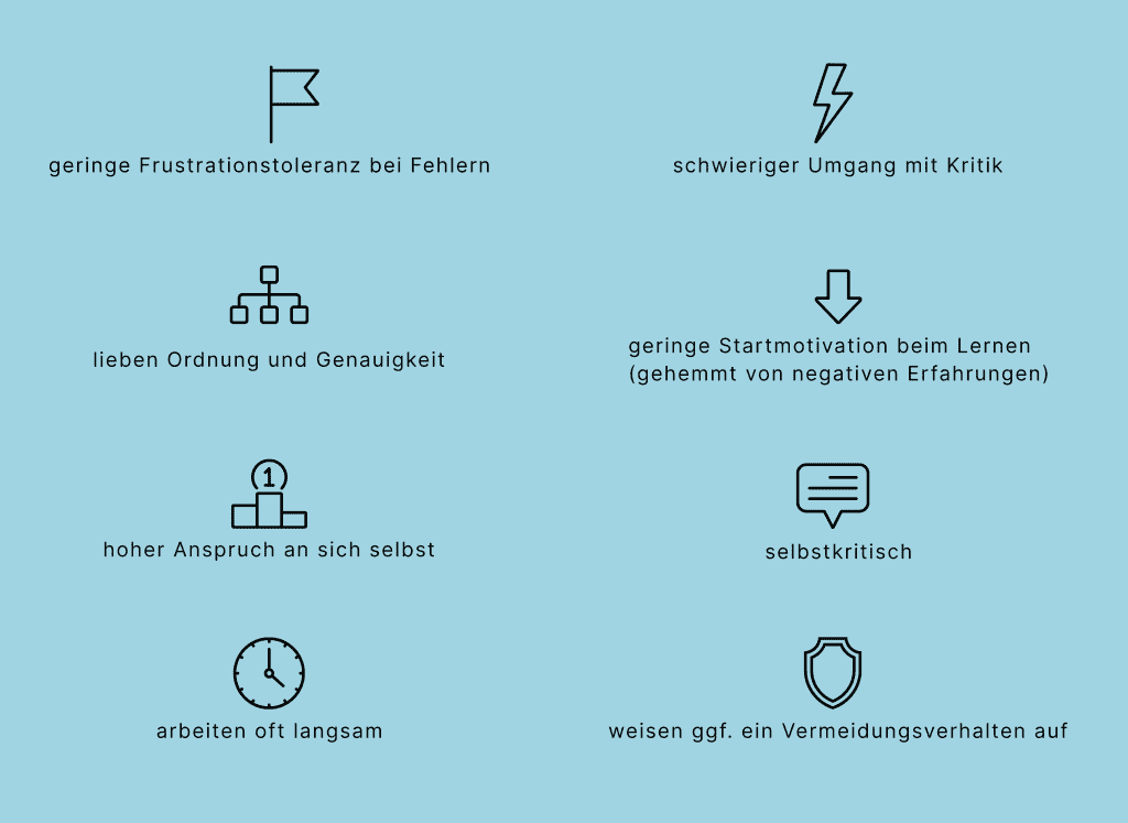 Merkmale von Kindern, die einen dysfunktionalen Perfektionismus aufweisen: