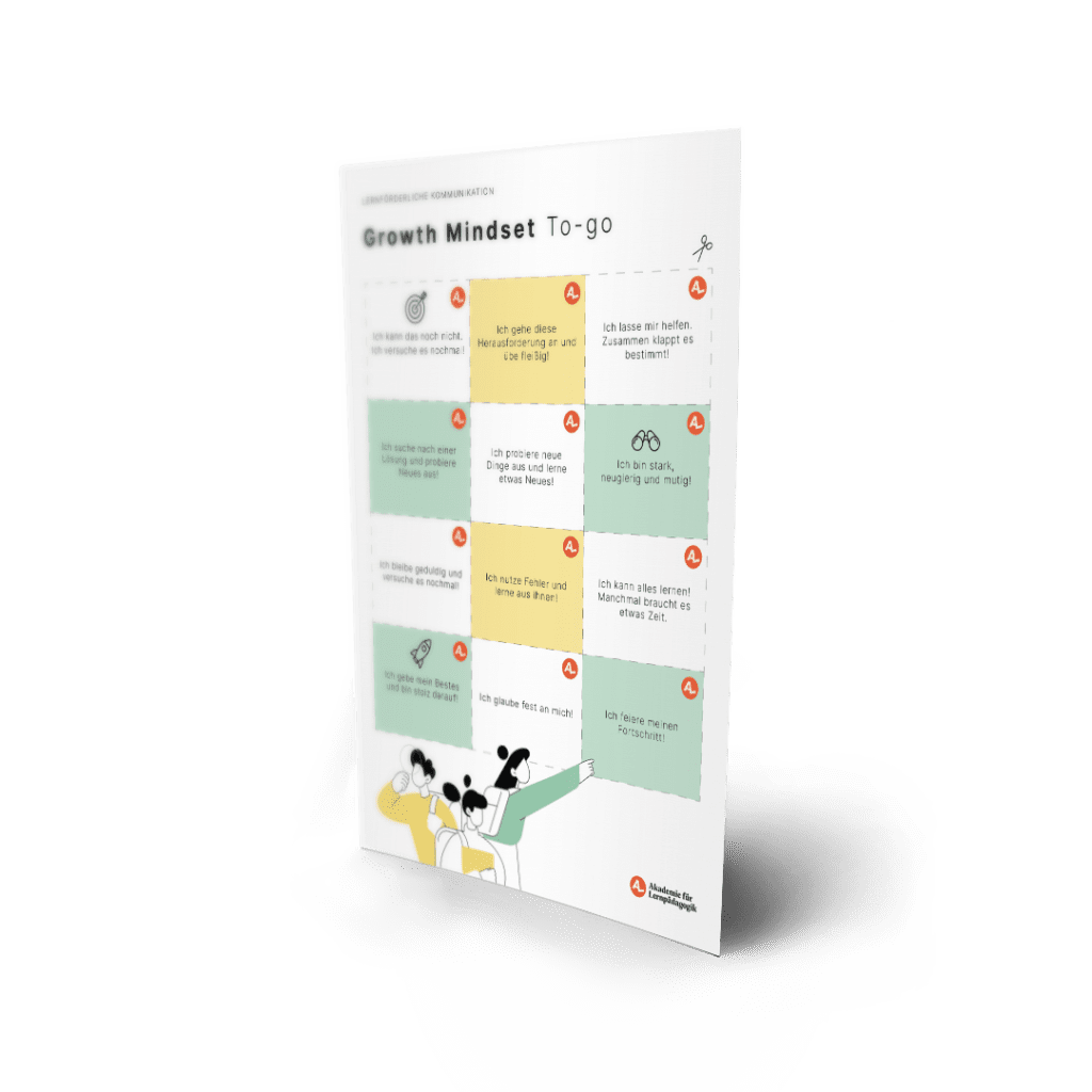 Wir haben eine Vorlage mit motivierenden Growth-Mindset-Sätzen für Sie vorbereitet. Die Sätze lassen sich heimlich in die Schultasche stecken, an die eigenen Schüler:innen austeilen und natürlich auch selbst beherzigen. 🙂